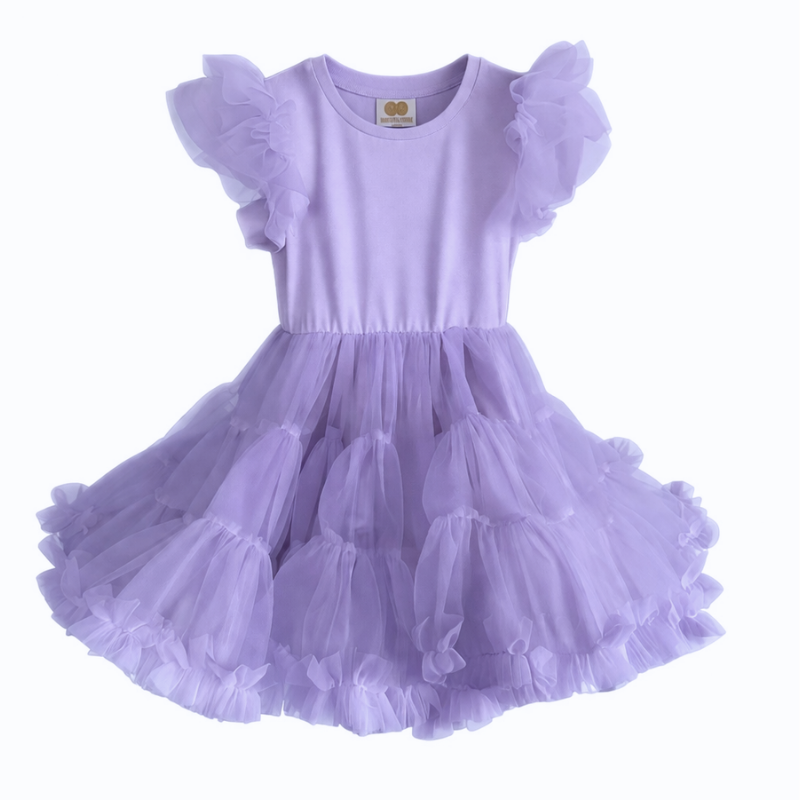 SUKIENKA Z FALBANKAMI KRÓTKI RĘKAW- LILA